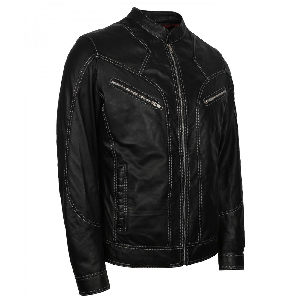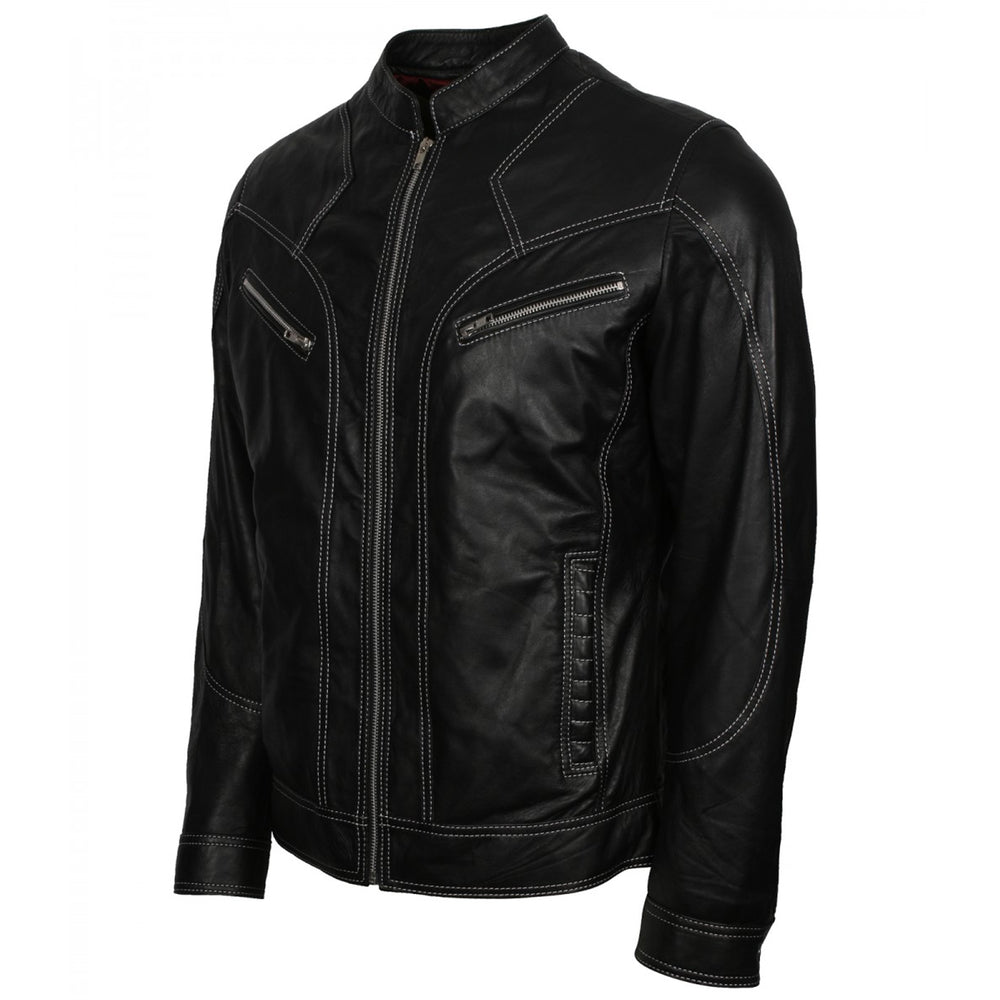 A classic black biker jacket with a sleek silhouette—perfect for riding, everyday wear, or pairing with casual and semi-formal outfits.
