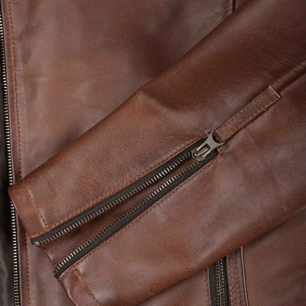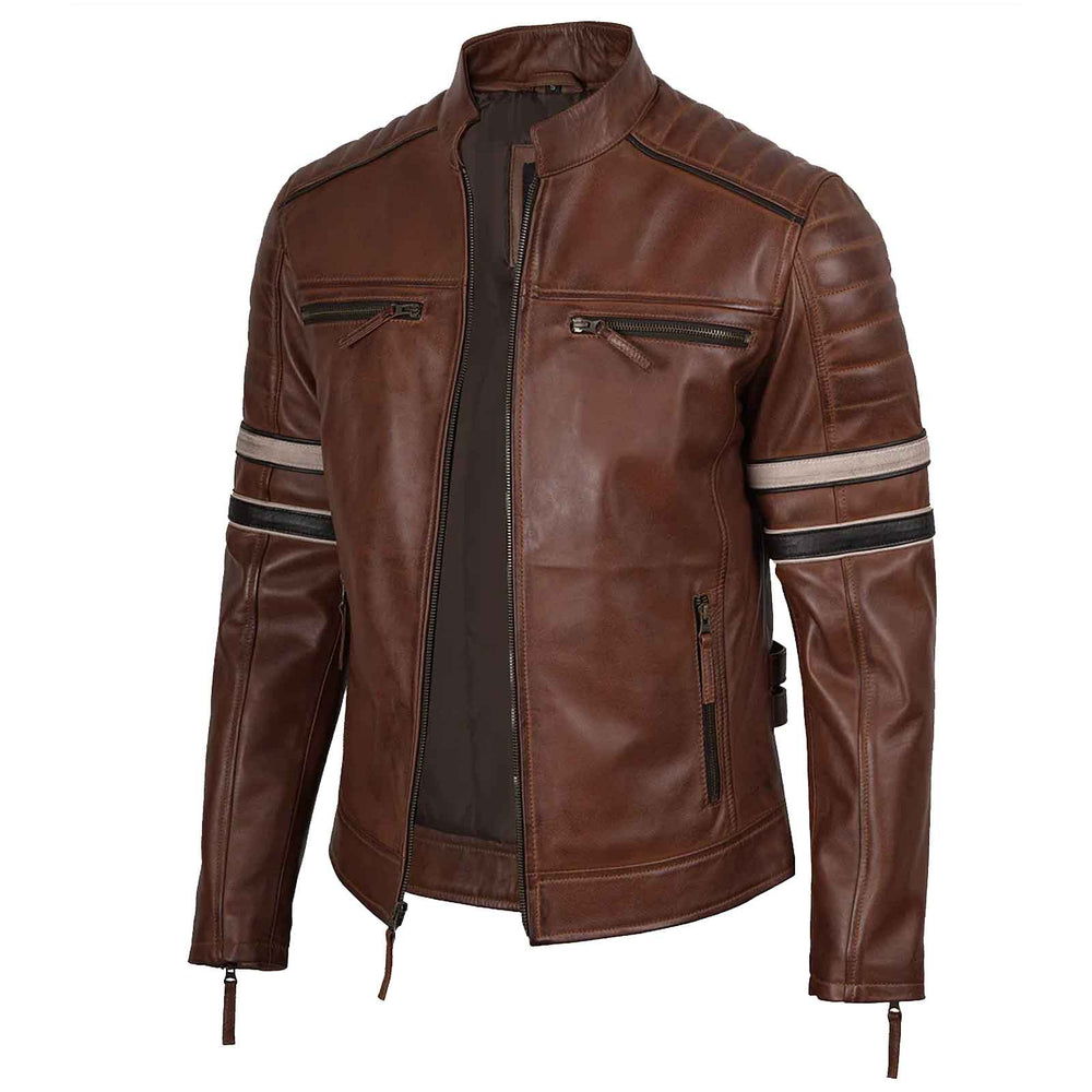 Add a bold twist to your everyday look with this Men’s Cognac Brown Biker Jacket from Regals Leather.