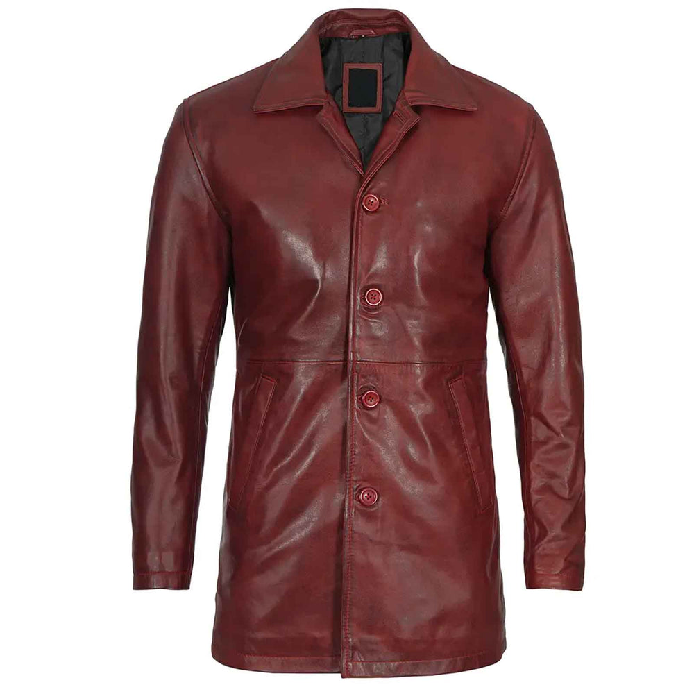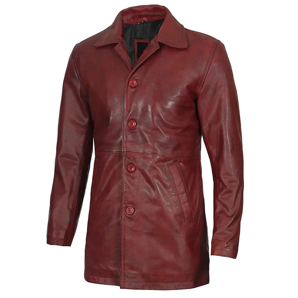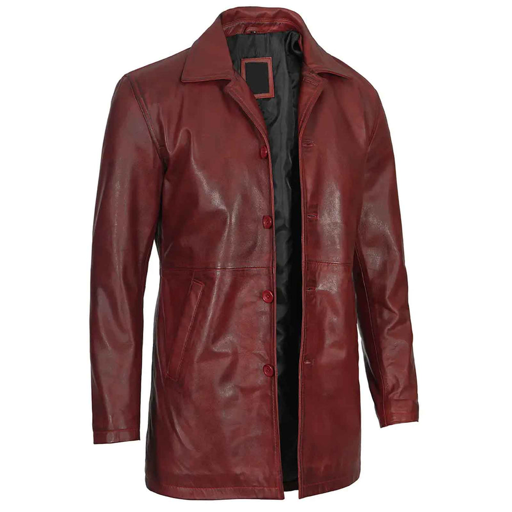 Upgrade your wardrobe with this Burgundy Real Lambskin Leather Car Coat for Men, designed to add smartness, sophistication, and style to any outfit. Crafted from 100% genuine lambskin leather, this coat offers a luxurious feel, exceptional durability, and a smooth finish that only gets better with age.