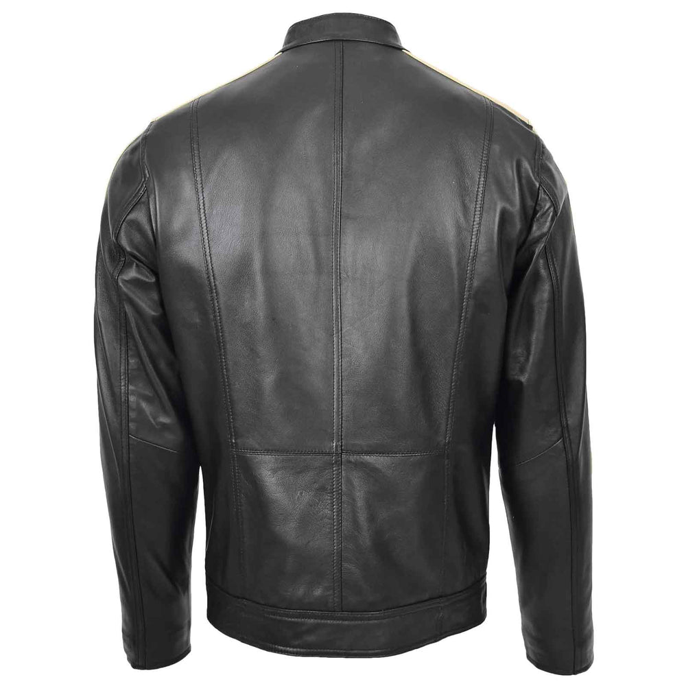 Rev up your style with this classic Men’s Leather Biker Jacket, designed with bold off-white racing stripes along the sleeves for an iconic, sporty look. Crafted from soft-touch sheep nappa leather, this jacket combines luxury comfort with rugged biker attitude—perfect for everyday wear or motorcycle styling.