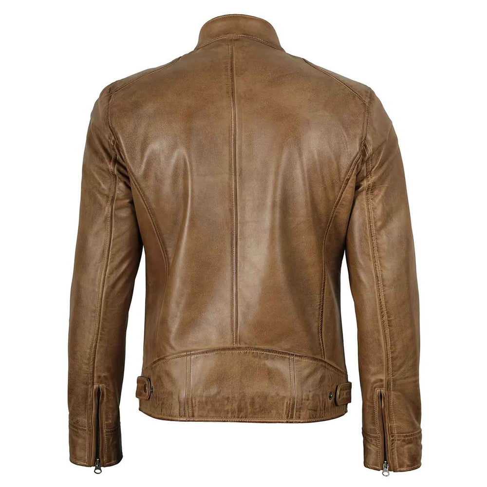 Men’s Camel Café Racer Leather Jacket – by Regals Leather