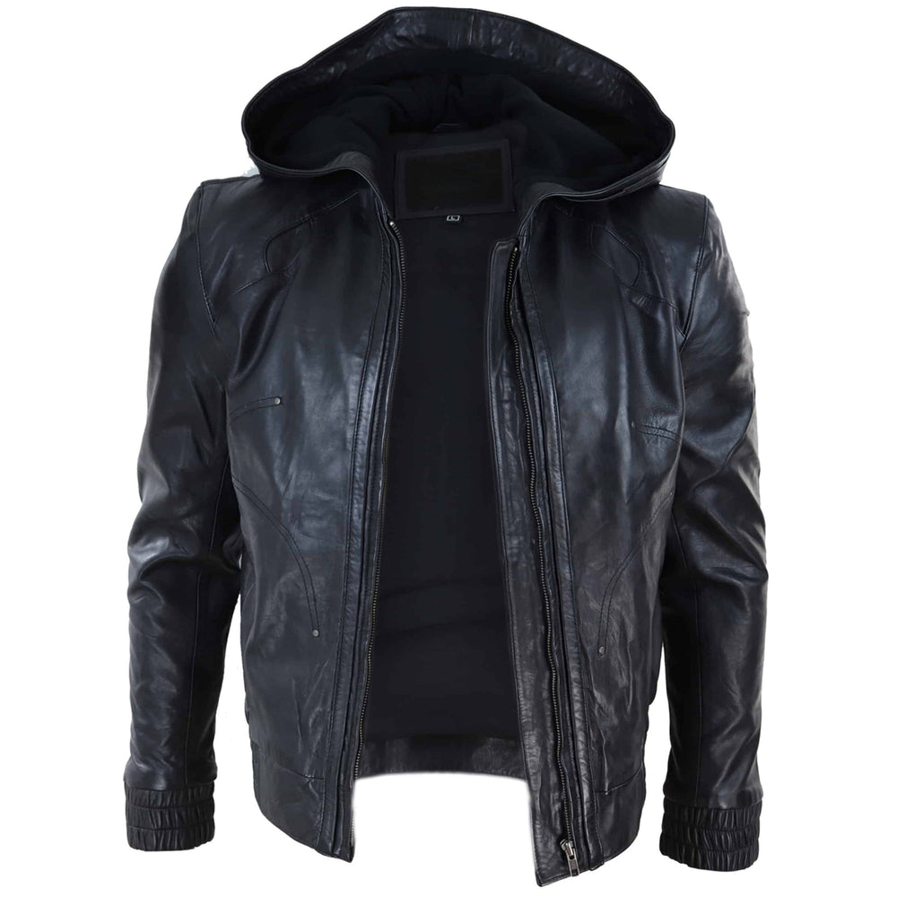 Ride the fashion wave and rule the streets with the Regals Leather Men’s Hooded Bomber Leather Jacket, a perfect balance of rugged charm and modern comfort. Crafted from premium-grade genuine leather, this jacket delivers durability, versatility, and a sharply defined style that transitions effortlessly through every season.