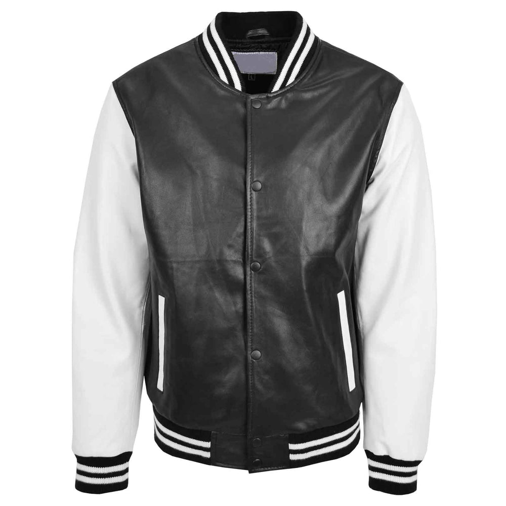 Bring back timeless collegiate fashion with the Men’s Garry Black & White Leather Varsity Jacket, a stylish blend of sporty appeal and luxury craftsmanship. Made from premium soft nappa leather, this jacket delivers a smooth texture, exceptional comfort, and a bold two-tone design that never goes out of style.