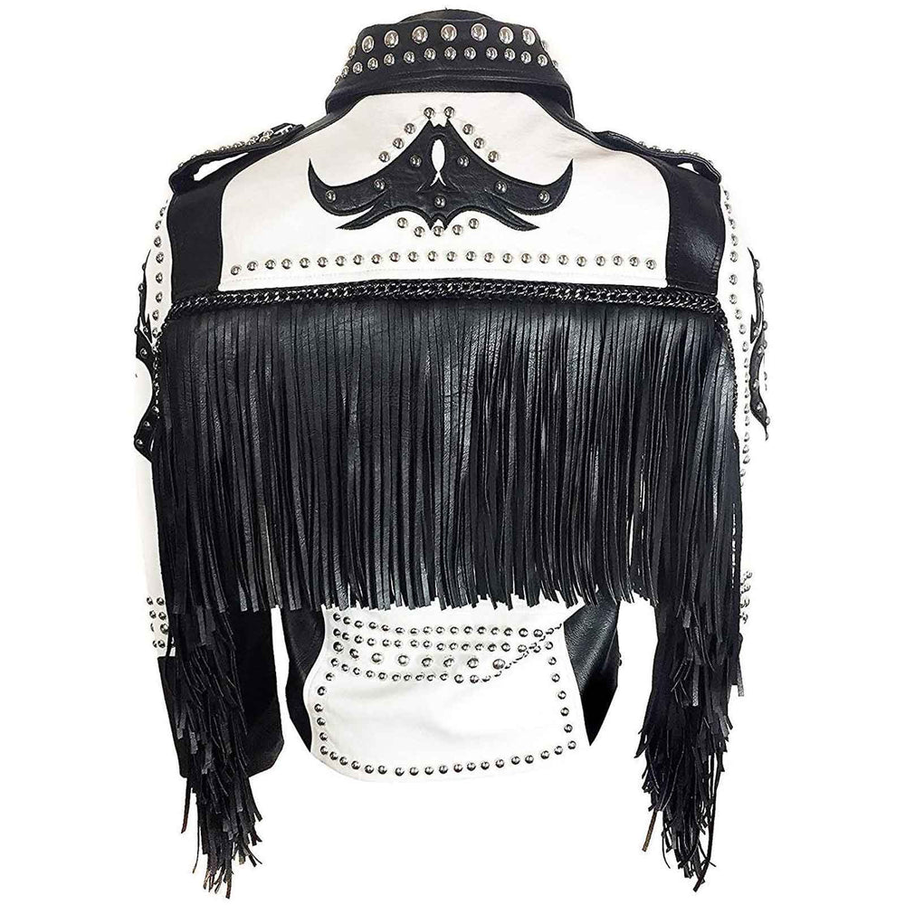 Design Details: Multiple Tribal Patches, Studs All Over Jacket, Fringe & Riveted Detailing