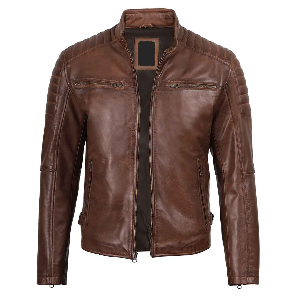 Crafted from buttery-soft, 100% real lambskin leather, this cognac brown café racer jacket embodies effortless cool and timeless appeal.