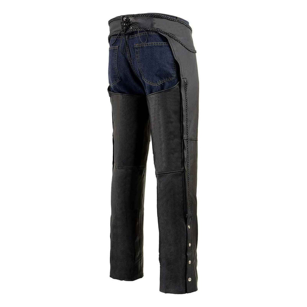 Protective Chaps | All-seasons leather chaps feature to prevent overheating, making them perfect for wintery weather. Additionally, they come with a fixed breathable mesh liner under thermal layer for warm weather conditions, allowing you to wear this pair of bikers gear all year long. You also have the option to customize the length of the unhemmed chaps by cutting the bottom with scissors to your desired length, ensuring a perfect outfit.