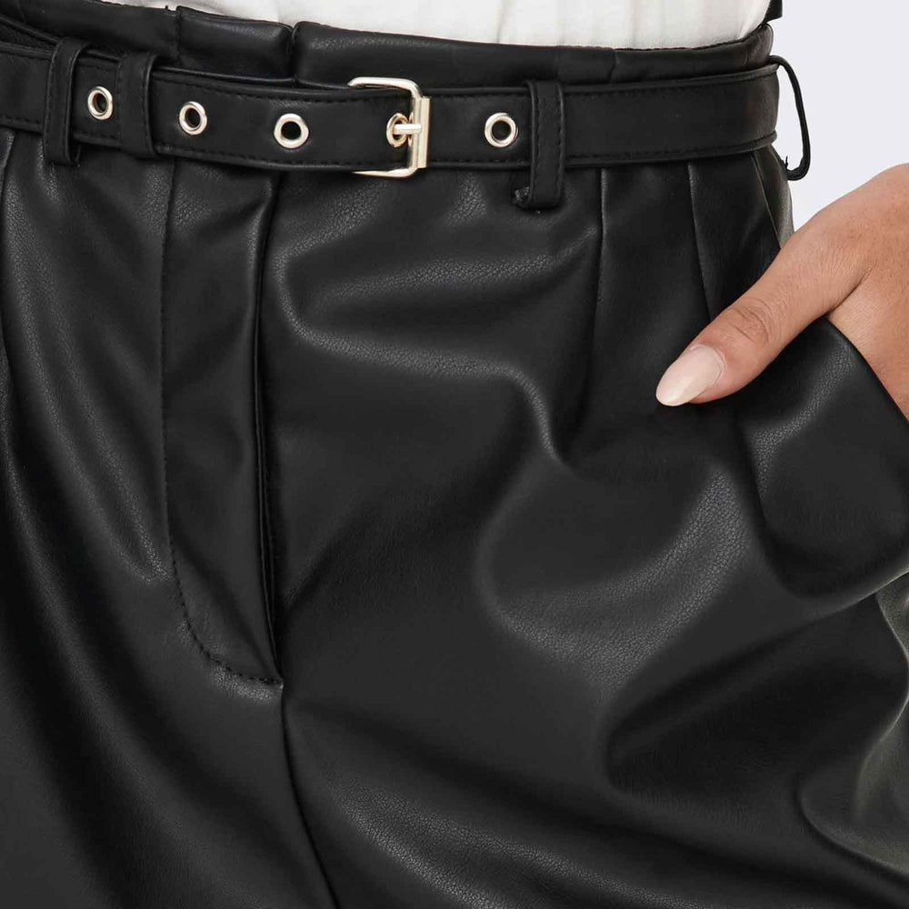 Crafted from premium faux leather, these shorts deliver the sleek appearance of real leather with a soft, flexible feel. The mid-waist fit flatters your silhouette, while the regular fit ensures comfort and easy movement throughout the day.