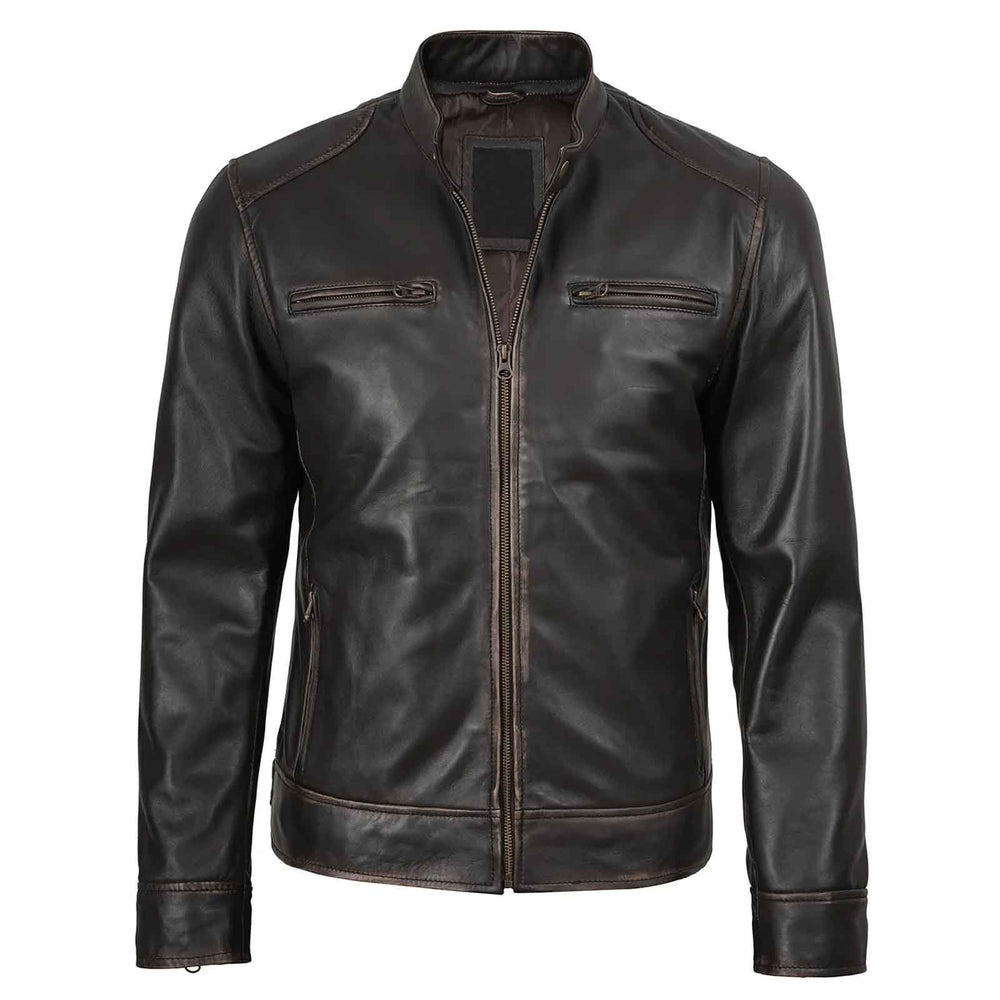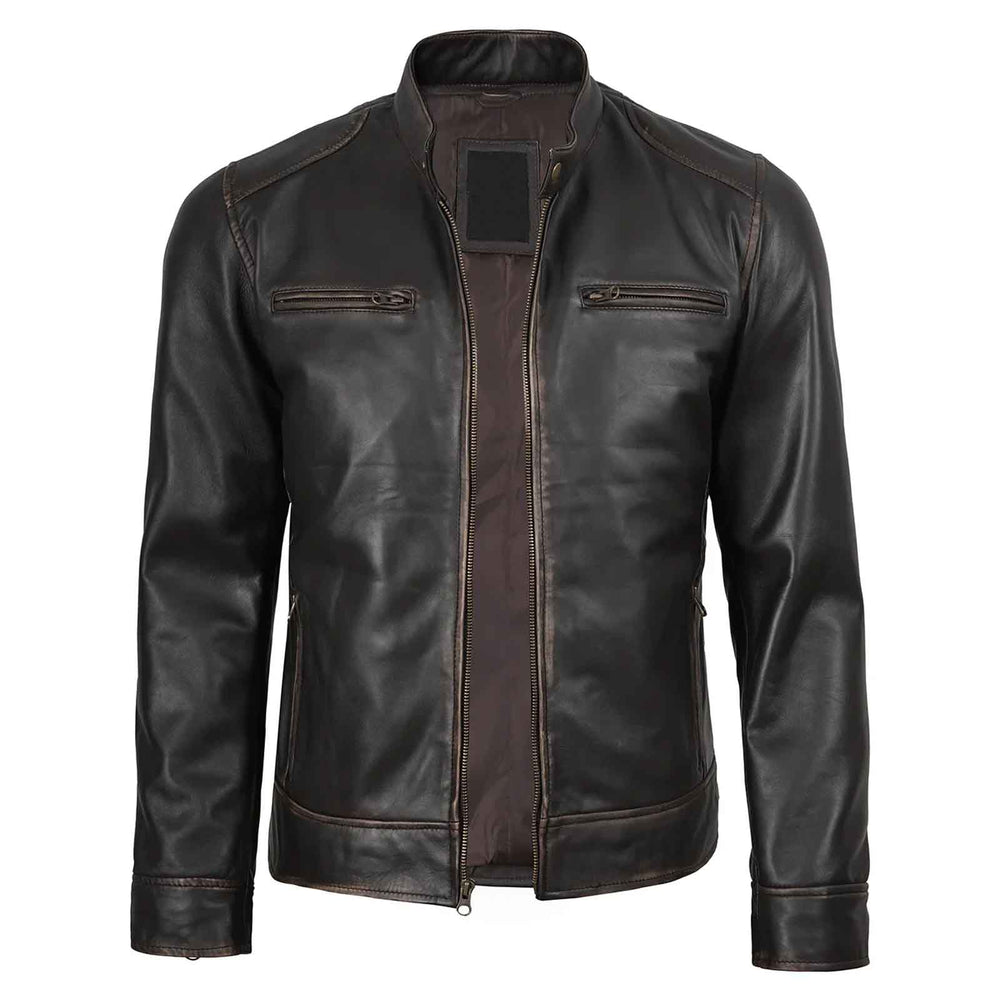 Upgrade your wardrobe with the Regals Leather Men’s Rub-Off Dark Brown Café Racer Jacket, crafted from 100% real lambskin leather for unmatched softness, durability, and premium feel. Designed in a slim-fit silhouette, this biker-inspired jacket features a vintage rub-off finish that adds character and timeless appeal, making it perfect for riders, streetwear lovers, and anyone who appreciates classic style.