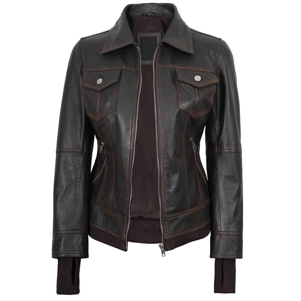 Enjoy versatile fashion with the Regals Leather Tralee Women’s Rub-Off Dark Brown Bomber Leather Jacket, designed to offer two styles in one. Crafted from 100% real lambskin leather, this jacket features a rich rub-off dark brown finish that delivers a timeless vintage look while remaining modern and practical.