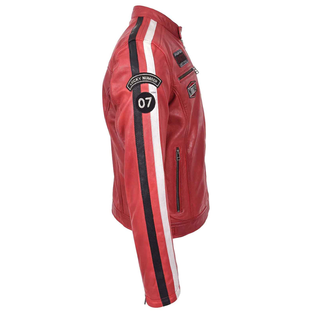 Made from premium quality sheep nappa leather, this jacket isn’t just outerwear; it’s a bold statement of freedom, rebellion, and timeless fashion. Featuring authentic motorsport-inspired badges and racing stripes on the sleeves, it perfectly captures the spirit of speed and individuality.