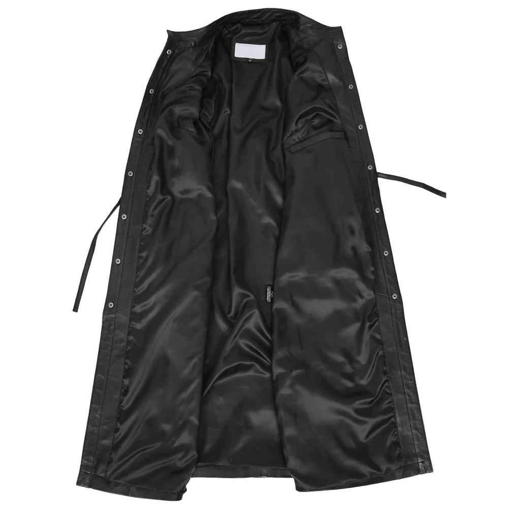 Elegant Style: Designed for full-body coverage and protection from the cold, this black leather trench coat provides both style and practicality.