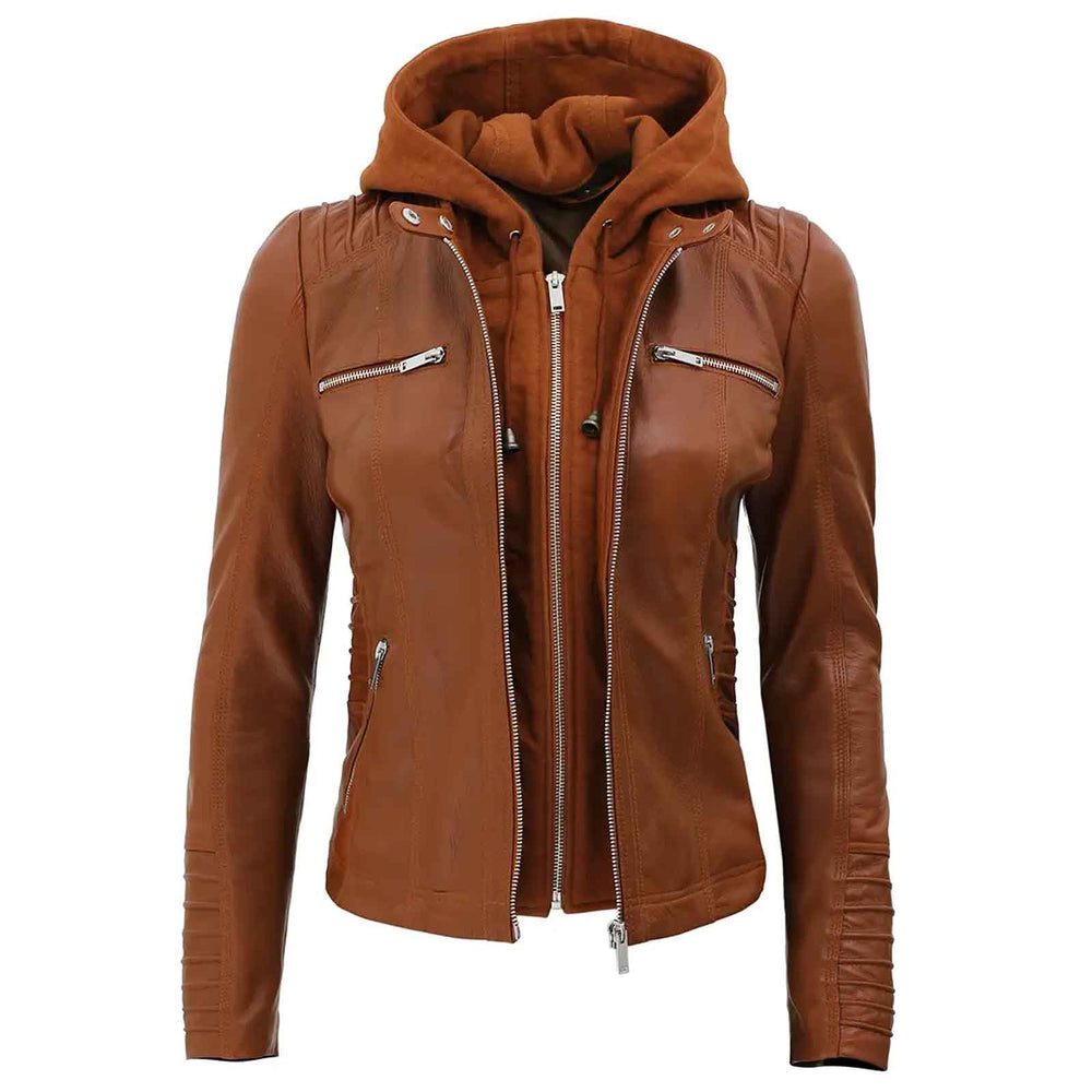 Elevate your wardrobe with the Women’s Brown Real Leather Bomber Jacket with Removable Hood, a perfect blend of elegance, durability, and versatility. Designed by The Genuine Leather, this stylish jacket brings a unique touch to your outfit — whether you’re dressing up for a night out or going casual during the day.