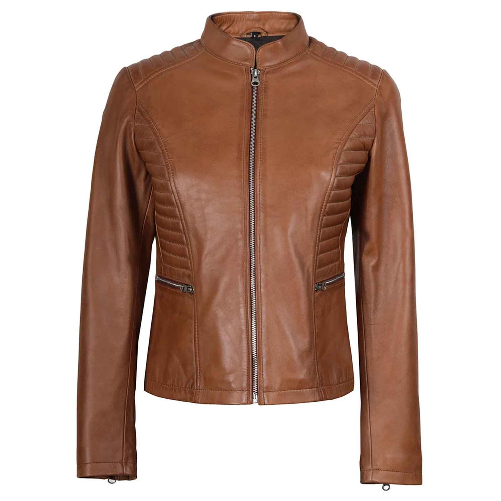 Make a bold and confident statement with this Women’s Tan Leather Biker Jacket by Regals Leather, crafted from 100% real lambskin leather for a soft, luxurious feel and long-lasting quality. Designed with a flattering tailored fit, this jacket enhances your silhouette while delivering a modern biker edge.