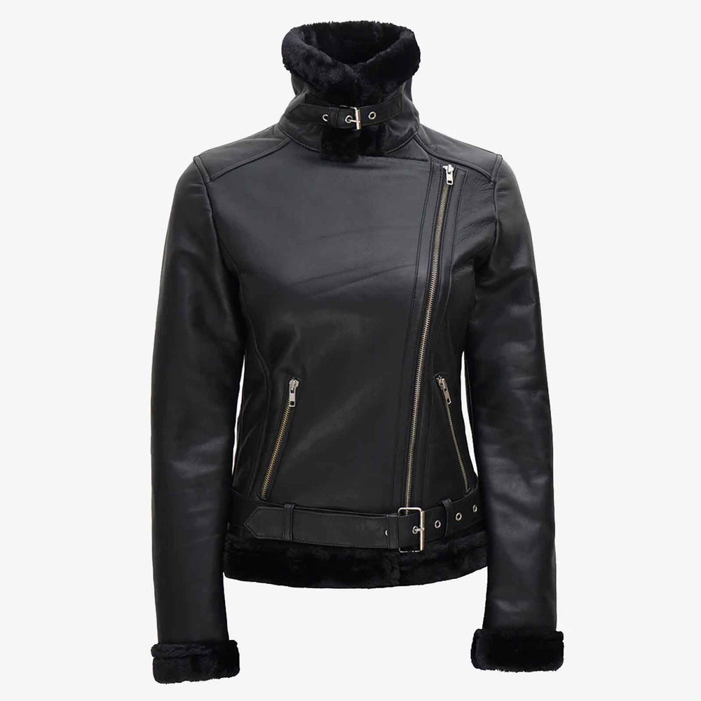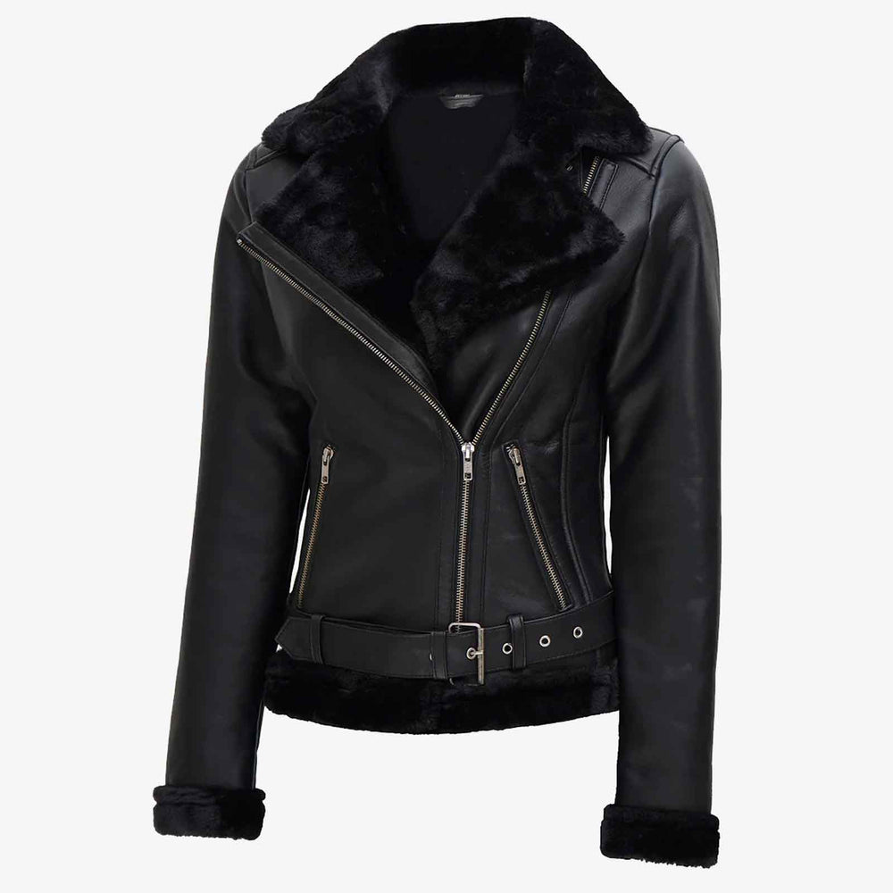 Take on winter in style with the Women’s Black Shearling Leather Aviator Jacket by Regals Leather.