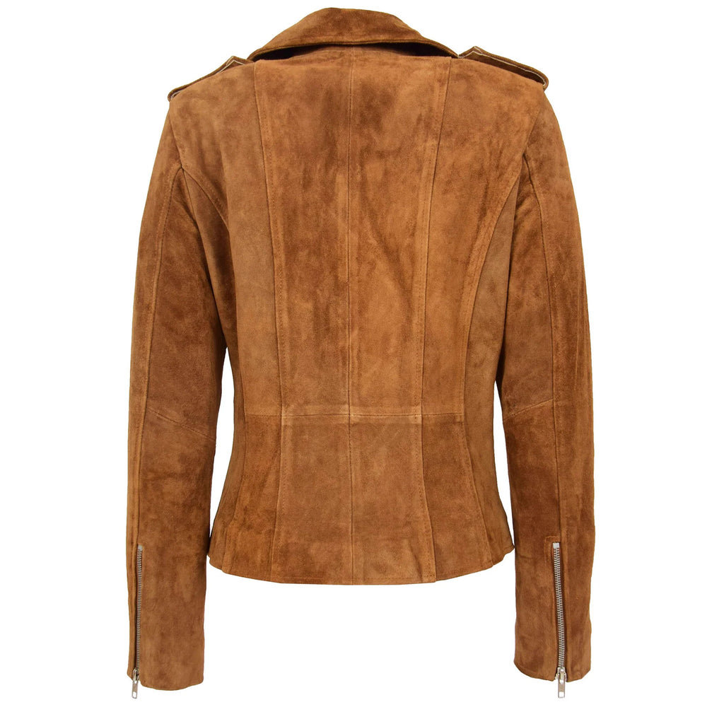A true icon reimagined, the Skylar Tan Suede Biker Jacket brings a modern twist to a timeless classic. Inspired by the legendary motorcycle silhouette, this jacket is crafted from premium genuine soft suede, offering a luxurious feel and a relaxed, casual elegance that transitions effortlessly from day to night.