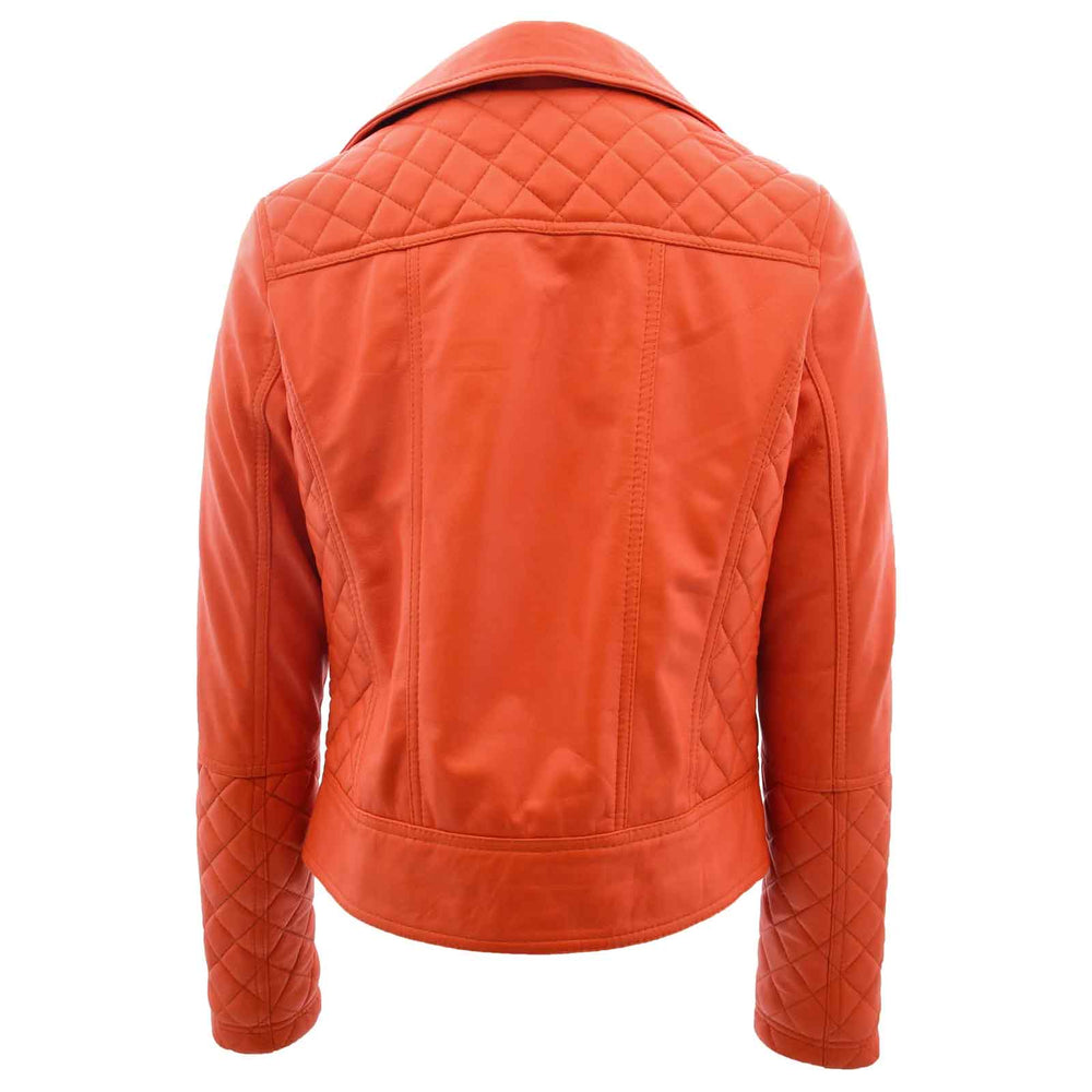 Make a bold style statement with this women’s leather biker jacket, beautifully designed with eye-catching quilted detailing throughout. Crafted from luxuriously soft nappa leather, this jacket offers a perfect balance of comfort, durability, and standout style. The cross-zip front fastening adds a classic biker edge, while the tailored fit enhances your silhouette.